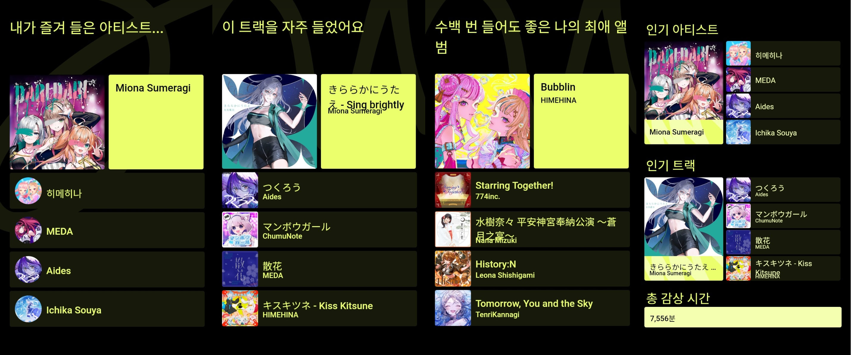 카게프로 노래도 많이 듣고 있긴 한데 커버 같은거랑 분산된 탓에 없는건가 싶기도ㅋㅋㅋ