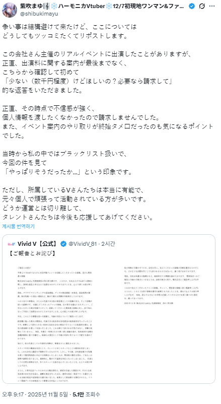 이게 소속되어있던 버튜버 + 주변 버튜버들의 증언이 이틀동안 끊이지가 않네