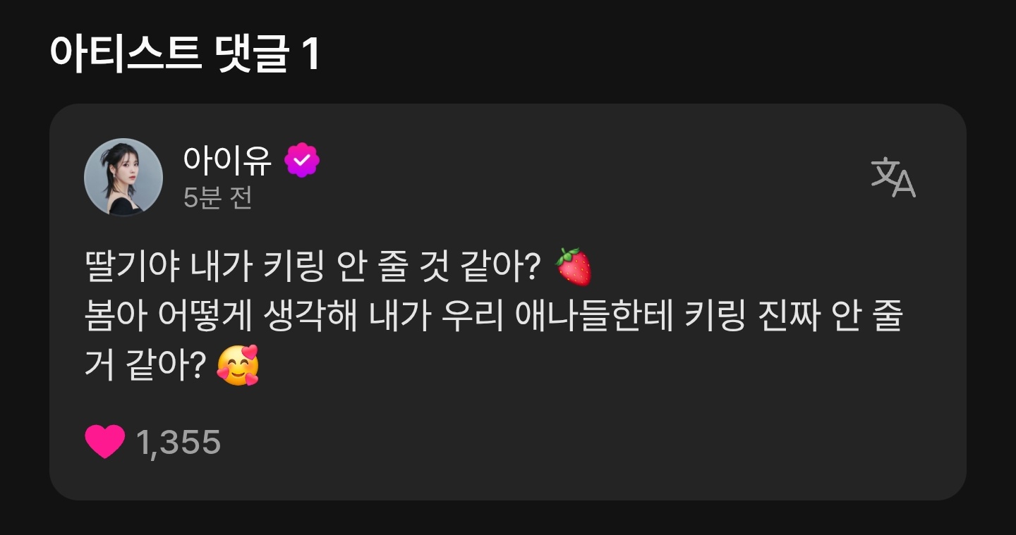 아이유 팬 게시판 입니다. 게시글 작성 및 댓글 작성 전 공지사항을 꼭 참고해 주세요.