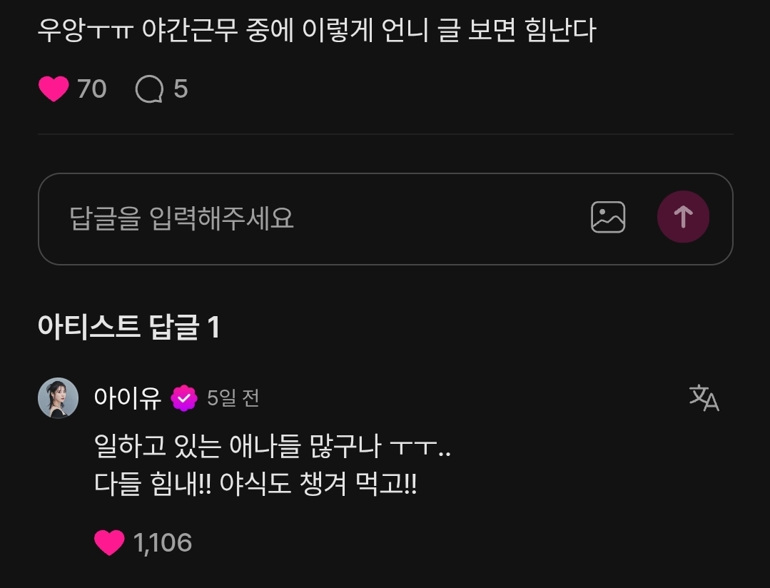 아이유 팬 게시판 입니다. 게시글 작성 및 댓글 작성 전 공지사항을 꼭 참고해 주세요.