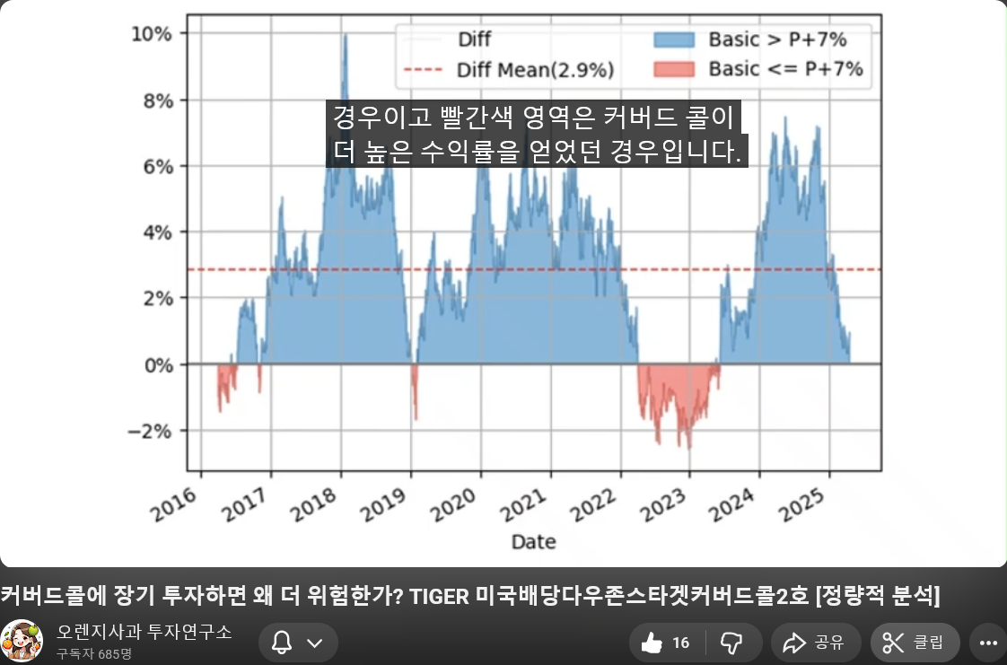 <동영상1> 영상6분~ 커버드콜 간략 소개, 예시 "미래 주가상승보다 현시점(배당)에 집중하는"