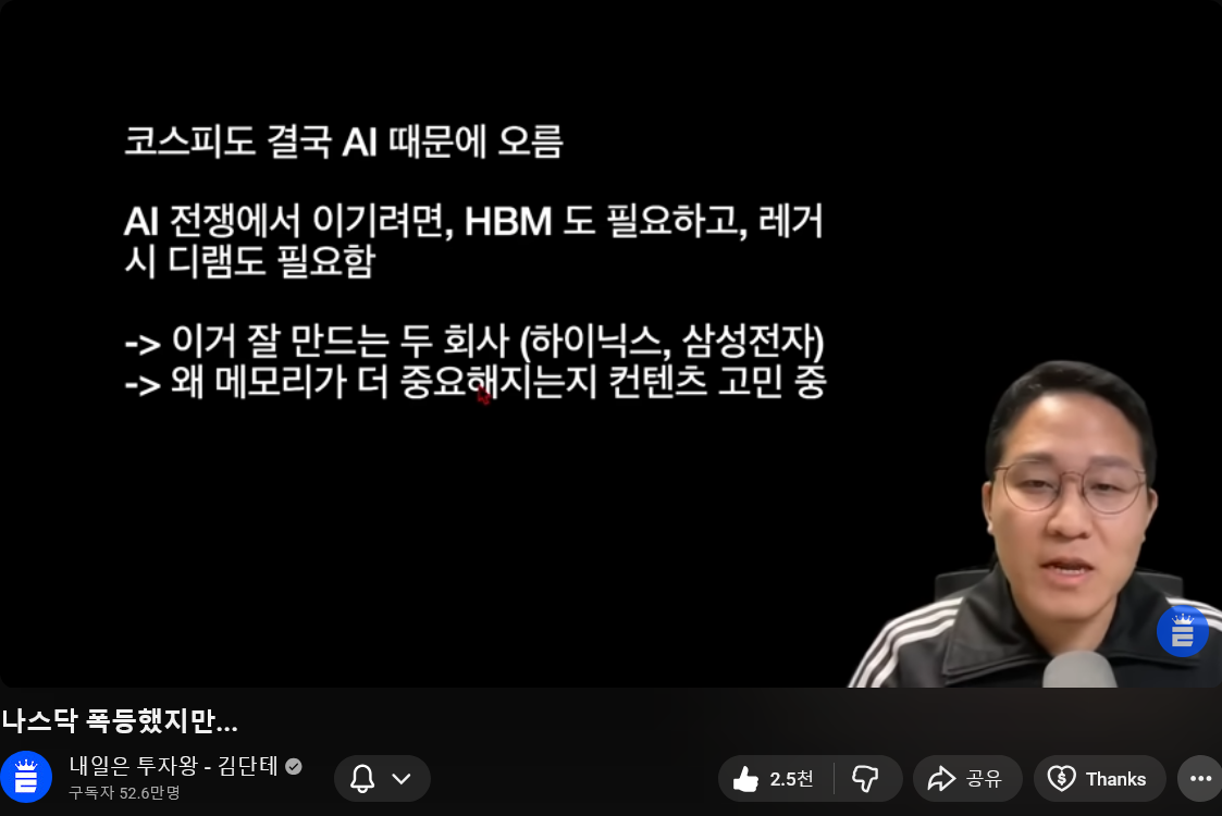 <사진> 동영상1 요약. 영상6분~ : 오픈AI발 호재로 시장이 오르고있는데, 이것저것 따져보면 부담&걱정됨.