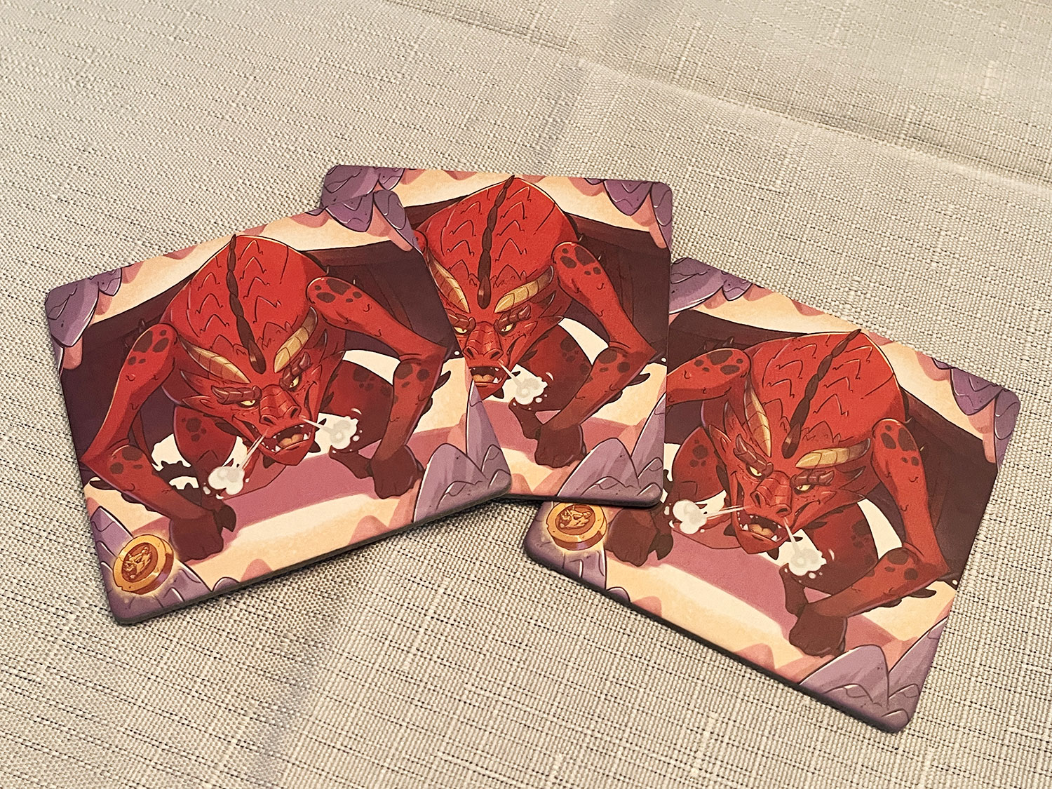 거미(딱 세 마리뿐)는 항상 나쁜 반면, 용은 꽤 수익성이 좋다는 점도 마음에 들었습니다. 찾아야 할 용이 열두 마리 정도 되기 때문에, 자기 차례가 되었을 때 먼저 용을 뒤집고, 기억나는 다른 용을 찾기로 마음먹는다면 좋을 수 있습니다. 이렇게 하면 점수를 얻는 데 도움이 될 뿐만 아니라 (거미 보너스에 더 가까워질 수 있고), 용의 그리드가 비워져 다른 보물을 찾기도 더 쉬워집니다.