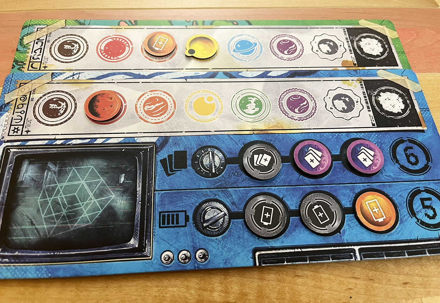 전술적인 요소에도 불구하고 전략의 깊이는 다소 제한적입니다. 하지만 두 가지 확장 모듈이 이러한 단점을 상당히 보완해 줍니다. 게임이 진행됨에 따라 성운이 행성의 궤도를 변화시키고, 특히 초고속 가속 엔진은 플레이어들이 에너지 저장 장치를 빠르게 업그레이드하여 자체 추진 능력을 대폭 향상시키도록 유도함으로써 게임 플레이의 양상을 완전히 바꾸고 게임 후반부를 빠르게 끝낼 수 있게 해 줍니다. 두 모듈 모두 게임을 더욱 흥미롭게 만들어주며, 추가 구성 요소 부담도 크지 않기 때문에 기본 게임에 포함되었어야 했다는 생각이 듭니다. 기본 게임에서 성운 카드를 사용하는 방식은 다소 아쉬웠는데, 성운 토큰을 배치할 수 없기 때문에 카드의 효과가 상대적으로 약하게 느껴졌습니다.