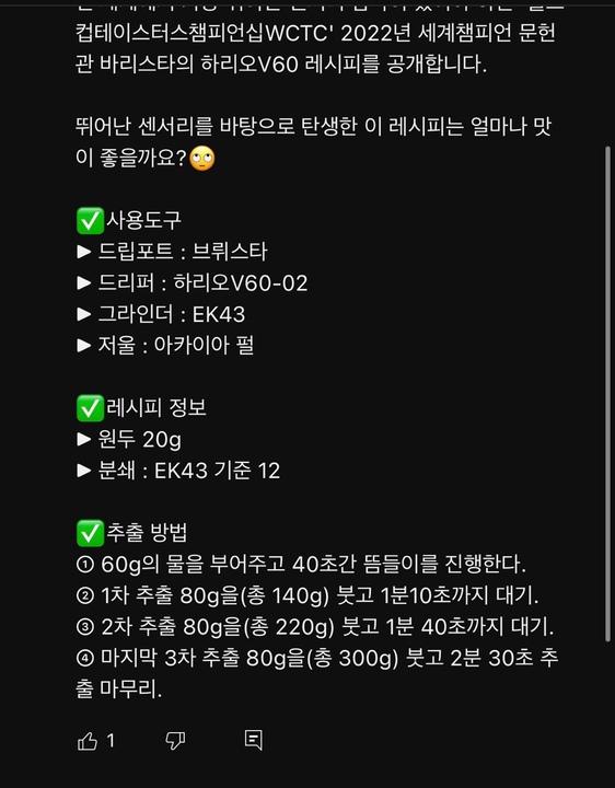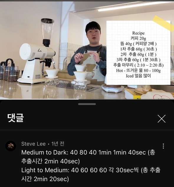KFP스콘부헤이민사육사오토모스저가 주로 사용하는 레시피라 한번에 안올라서ㅠㅠ 저걸 바탕으로 물 온도 조절, 원두 굵기 등등 조금씩 찾아보시면 좋아요!H중의GH25.02.27 14:53
