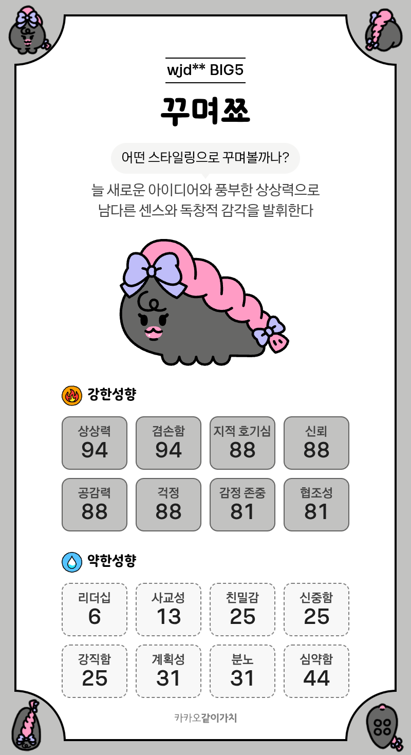 BEST카카오톡 > 점세개 > 같이가치 > 마음날씨 > big5 성격검사R.로제타26.01.15 17:13